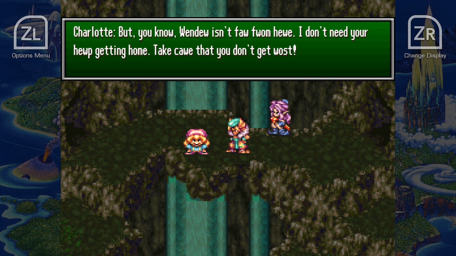 I don’t blame Charlotte’s English voice actor. She was just following orders, reading the dialogue as it was presented in last year’s official English translation of the 1995 Super Famicom original. The localization team made a decision. It was not a good one.