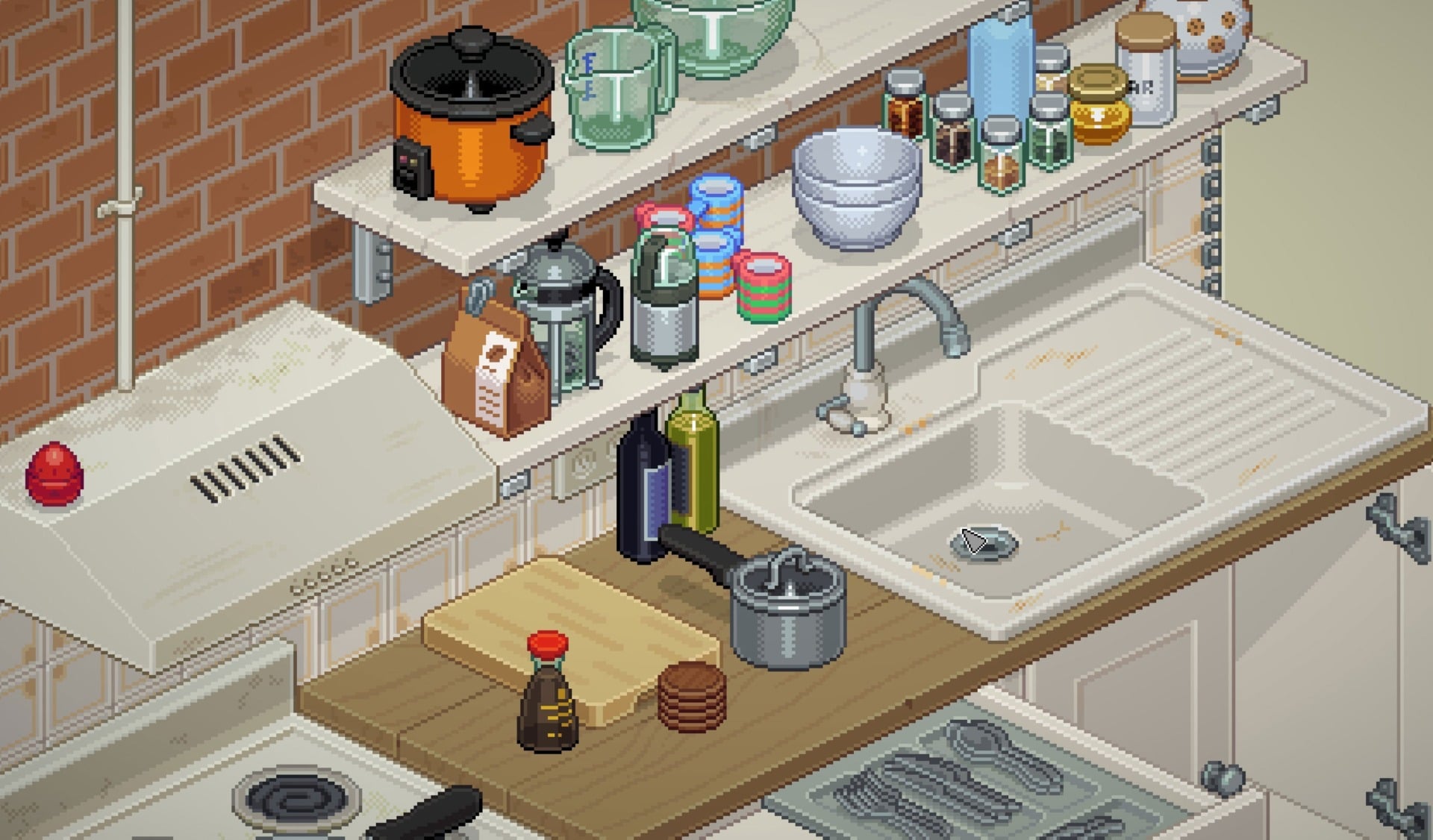 The finer details of where everything goes, though, are up to you. I found myself spending entire levels arranging my underpants in an annoyingly fastidious pattern, while at the same time tossing kitchen utensils into any drawer that would fit them, organisation be damned. Both approaches are acceptable for the limited progression framework at play here, but both are also ways player can develop the character’s story through the game. How neatly this person lives their life, what they put on display and where, that stuff is all up to you. What I found fascinating was that so many of the character’s traits that were being pencilled into my head as I played were being driven by my own actions, not anything being written or suggested by the developers.
