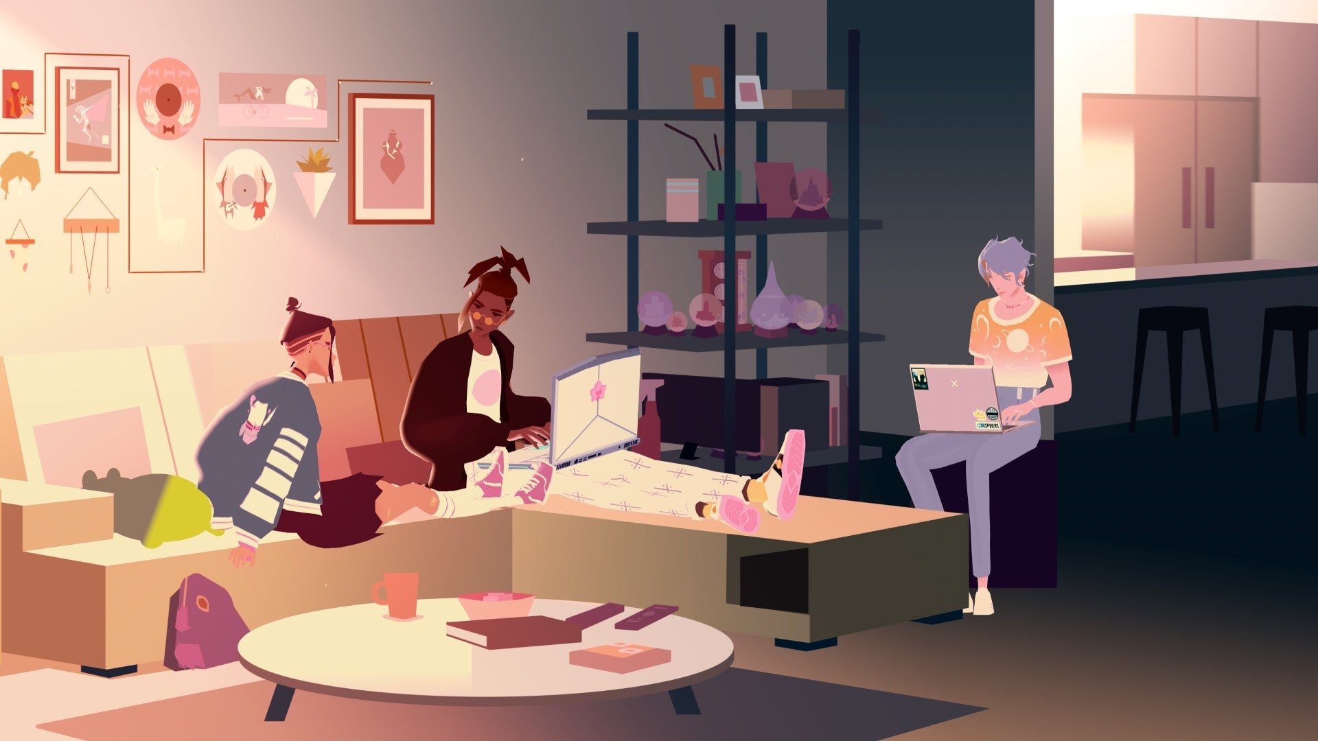 There are a few places, such as the interactive music videos that wrap up each episode, where you control one of the characters, running around completing arbitrary tasks like saving cats and popping balls. The lowkey gameplay works exceptionally well here because it leaves room for the characters and storytelling to fully inhabit the world you interact with. By only asking you to engage in meaningful interactions over giving you the fantasy of constant control, you get to soak in both the engrossing visuals and infectious songs.