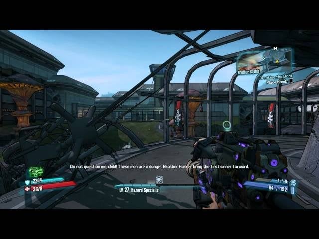 Everything in Borderlands 2 screams at you at the top of its lungs, so the player-characters’ relative silence felt out of place. Why were we perfectly happy write a sidequest about abusing the respawn system, or a character who exists only to ask you to shoot him in the face (and then to screech “THANK YOU” after you do so), but skittish about having the player’s avatar say anything of substance?