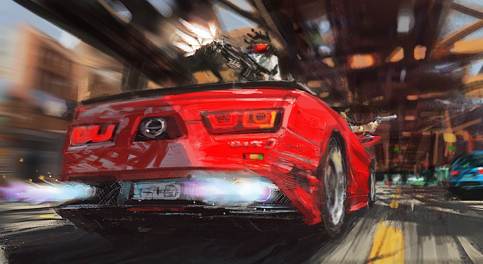 British artist Alex Brady has worked for clients like Jaguar, Land Rover, Cadillac, Adobe and Sony, and on game projects like the MotorStorm and DriftMania series. With a degree in Transport and Product Design, their vehicles are a lot more interesting than those we normally get to see on this feature.