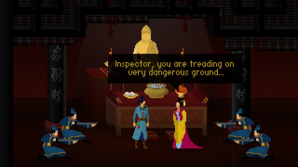 Even today, Chinese gamers have precious few heroes flying their cultural flag. At best, there’s Chun-Li from Street Fighter or Wei Shen from Sleeping Dogs, though both characters lean heavily on Kung Fu stereotypes and play up the criminal underbelly of Chinese society. Ta, disappointed with the dearth of genuine, inspirational Chinese heroes, has decided to take matters into his own hands with his studio’s latest game, Detective Di: The Silk Rose Murders. A point-and-click adventure game, it is based on the tales of the real-life Di Renjie, a detective from China’s Tang and Zhou Dynasties (approximately 618 to 907 A.D.). Di is often considered the Sherlock Holmes of ancient China, enjoying tremendous popularity in both the east and west thanks in large part to Robert van Gulik’s Judge Dee novels. Ta is a big fan of Gulik, and he wants to channel the same unique sense of time and place evoked by the books into Detective Di.