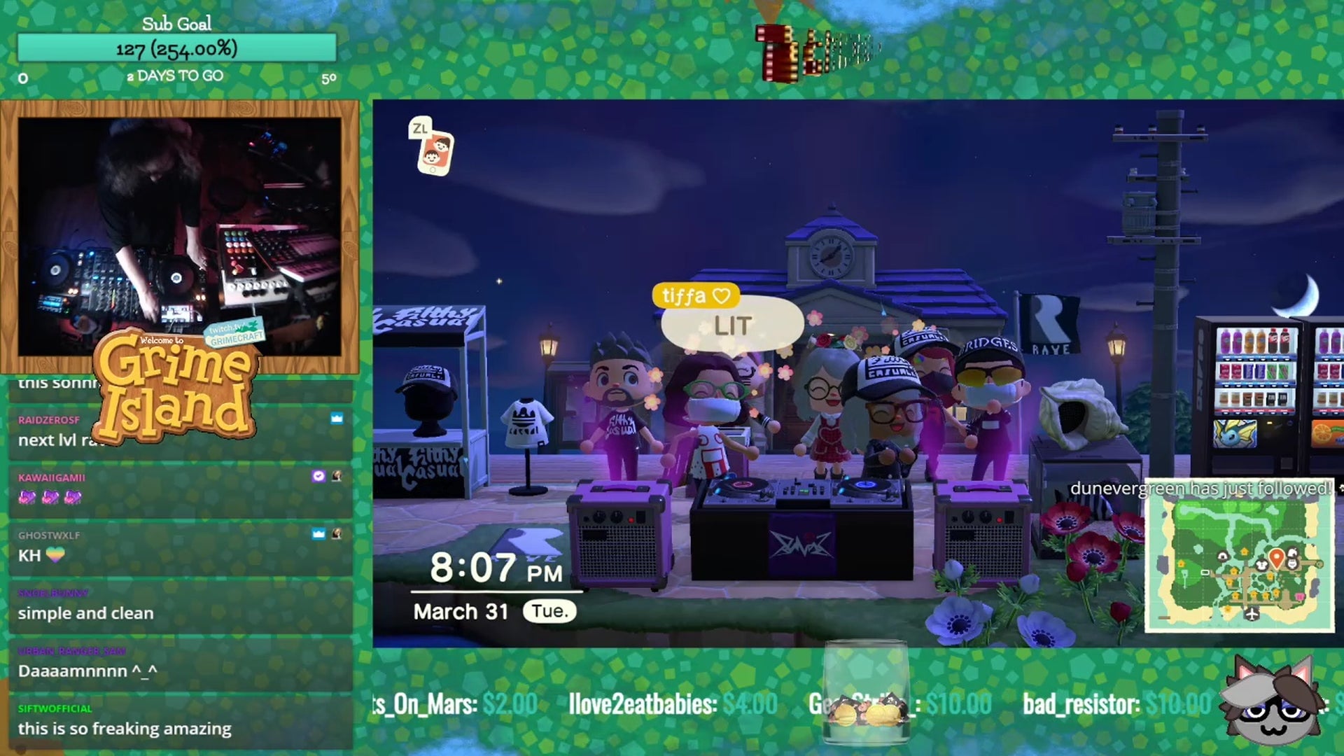“Twitch is really doing a lot to help all those big names—actually, to a point where they’re not helping me anymore,” he said. “I hit them up about front-paging my Animal Crossing stream, and they just kind of ignored me. I looked at what was on the front page, and it was [Diplo’s record label] Mad Decent, and they were just doing a one-camera DJ stream.”