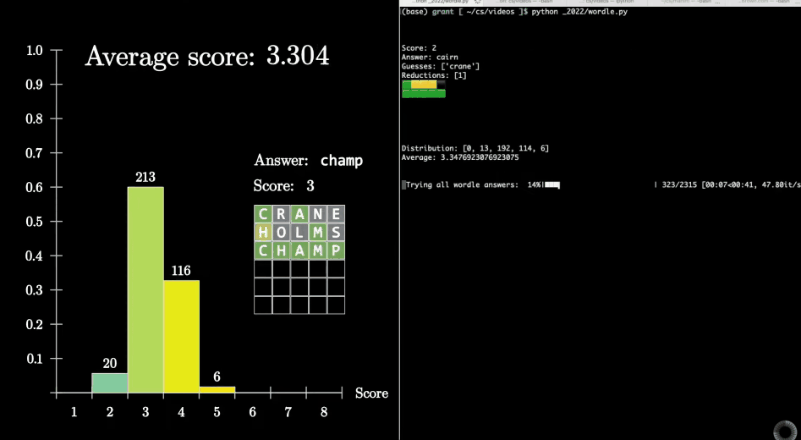 As Grant “3Blue1Brown” Sanderson has worked out (via Polygon), that word in the vast majority of cases is: CRANE. Take that information and run with it if you want, but the actually interesting thing here is how Sanderson came up with that answer.