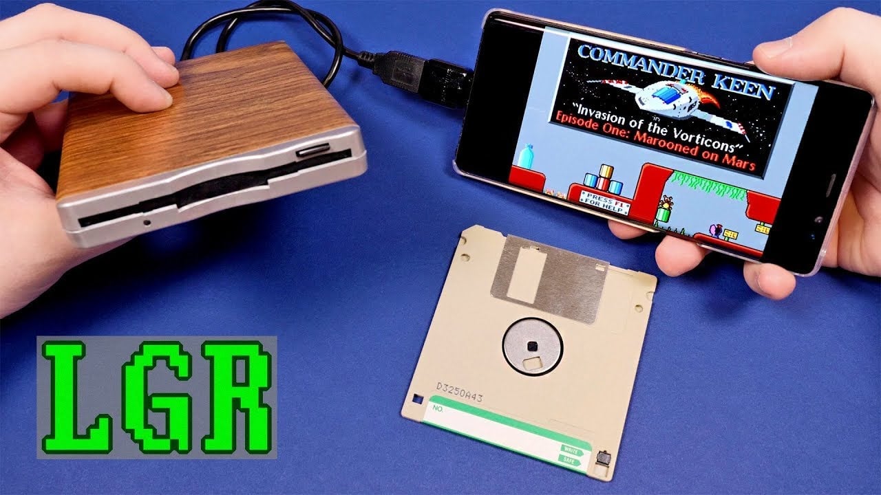 This video by LGR shows how its done, using a phone’s USB port to hook up a drive, get it working and read by the phone and then allowing you to play ancient PC games like, in this case, Commander Keen.